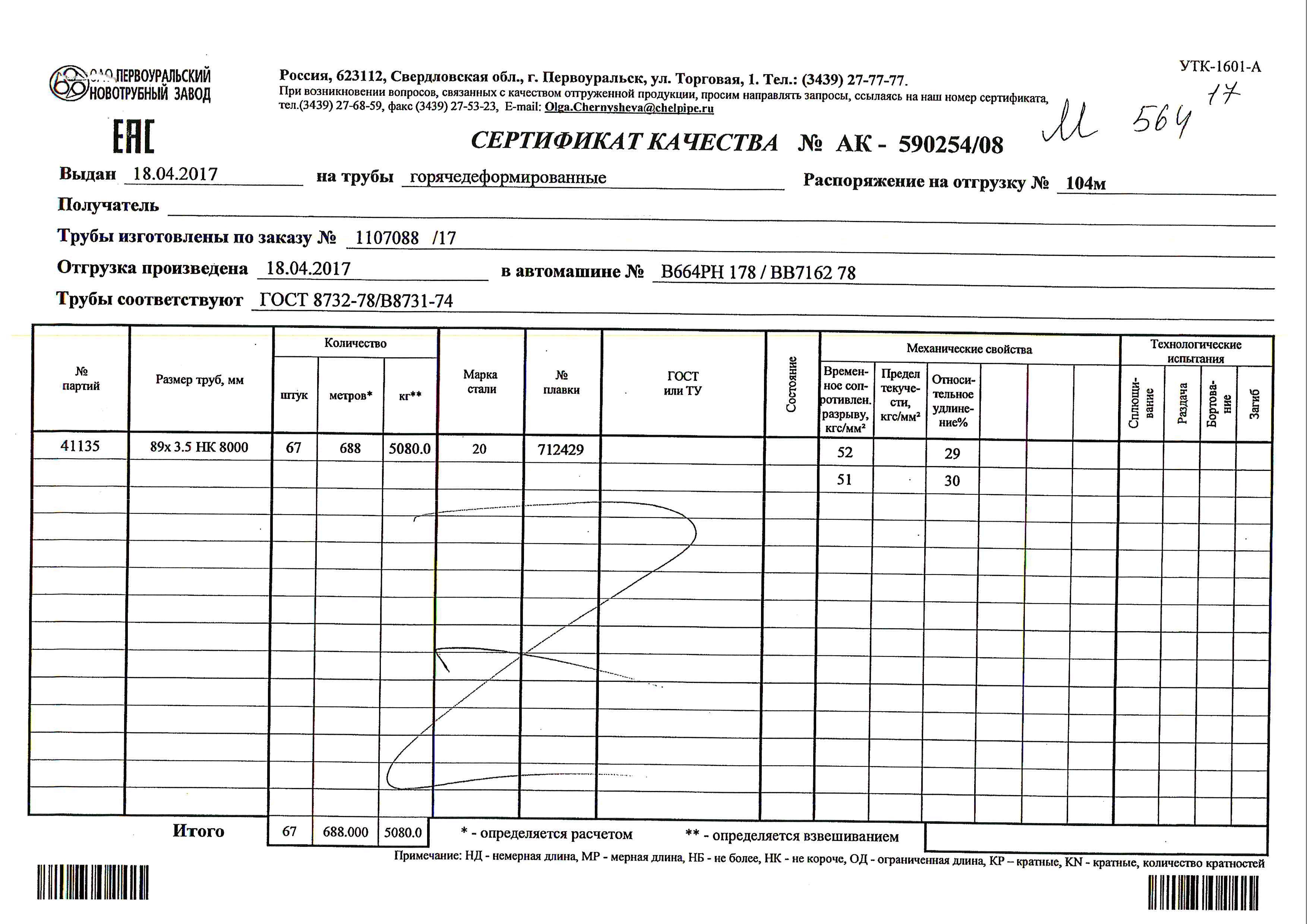 С каждой товарной позицией мы предоставляем все сертификаты и паспорта качества, а также товарно-транспортную накладную.