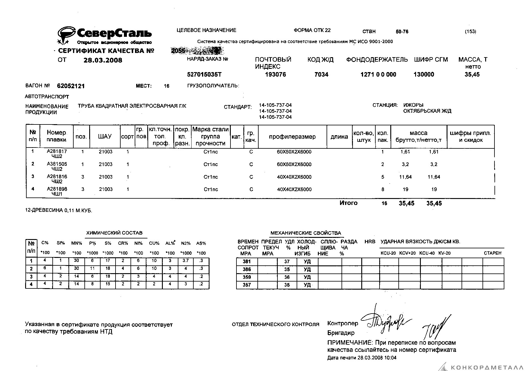 С каждой товарной позицией мы предоставляем все сертификаты и паспорта качества, а также товарно-транспортную накладную.