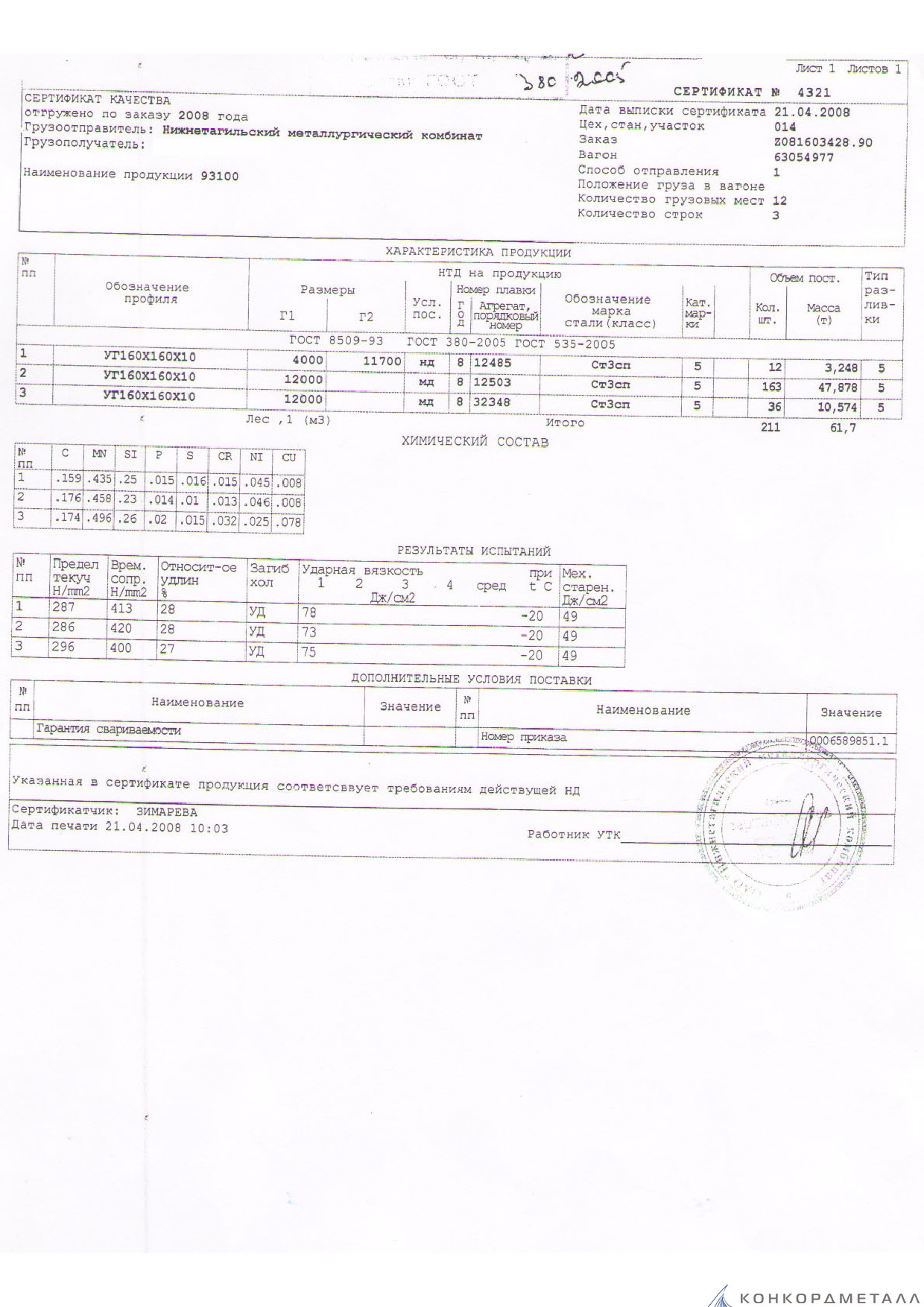 С каждой товарной позицией мы предоставляем все сертификаты и паспорта качества, а также товарно-транспортную накладную.